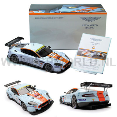 Eind deze week komt de 2008 Aston Martin DBR9 binnen in de Gulf kleuren. Het gaat om het presentatiemodel van #009. Gelimiteerd tot 2500 stuks, geproduceerd door AutoArt in de schaal 1/18.