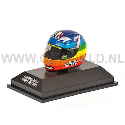 Zometeen komt van Valentino Rossi in de schaal 1/8 het helmpje van de 2003 winter test binnen. Klik hier om te bestellen.