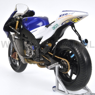 Gisteren is van Valentino Rossi de 2008 Yamaha YZR M1 in de Indianapolis uitvoering binnen gekomen. Niet alleen is de motor voorzien van regenbanden en wat racevuil maar ten opzichte van de standaard 2008 motor zijn er ook wat andere decals aangebracht. Klik hier om te bestellen.
