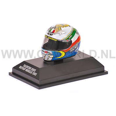 Van Valentino Rossi is zojuist in de schaal 1/8 van Minichamps de 2005 Mugello helm binnen gekomen. Deze is hier te bestellen.