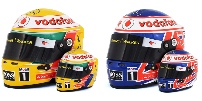 Gisteren zijn van Bell Sports de mini-helmen binnen gekomen van Lewis Hamilton en Jenson Button. Beide geproduceerd in de schaal 1/2, beide van seizoen 2012. Klik hier om te bestellen.