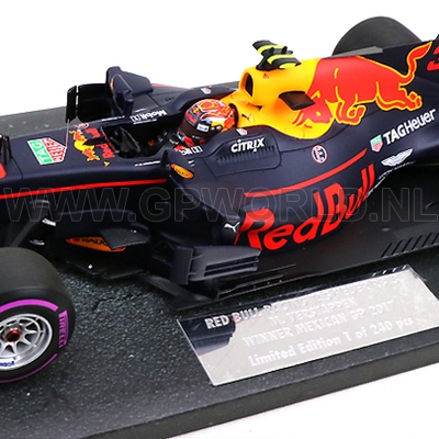 Net als de Malaysia versie van Minichamps komt ook de 2017 Mexico versie van Minichamps uit in de schaal 1/18 en ook een oplage van 240 stuks. Deze 2017 Red Bull RB13, winner Mexico van Max Verstappen is net als de Malaysia versie onderdeel van de resin serie.